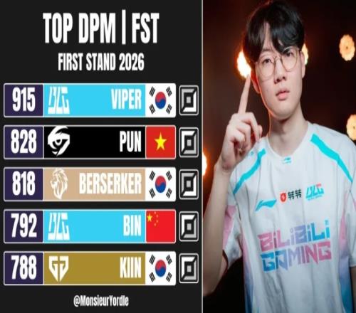 外媒統計26先鋒賽分均傷害排行:Viper排名第一,Bin第四