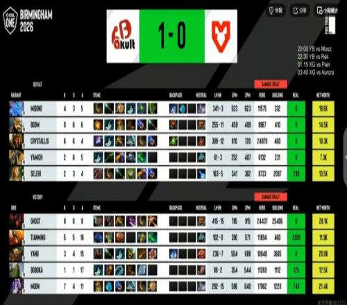 31分鐘MOUZ小Y和酒仙直接白給,YB幾乎白給的方式拆掉對手第三路高地,打出超級兵后撤退!35分鐘YB開霧蹲高地再次秒掉BOOM酒仙,逼出買活!回頭作勢打肉山,Ghost影魔BKB推推進場貼臉兩下一個,在中路+高地連續強殺Crystallis獸王,結束比賽先拿一分!