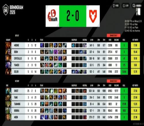 體育播報3月23日宣 ESL伯明翰來到第二日,中國戰隊YB在今天的首個對手是MOUZ!