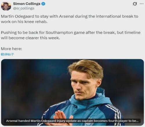 但顯然厄德高是不會參加本期國家隊的比賽了,希望他能在兩周后復出吧,其實阿森納的進攻是很需要他的。