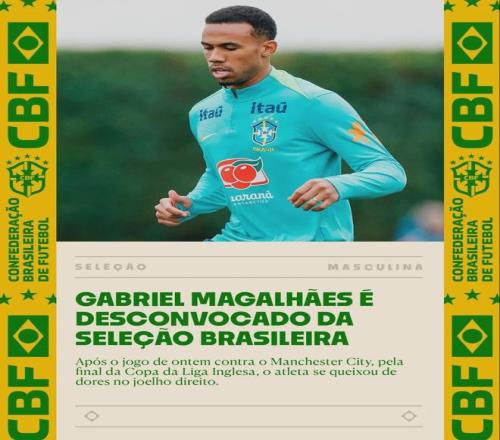 官方:巴西足協宣布加布里埃爾因膝傷(右膝疼痛)退出了本次國家隊。