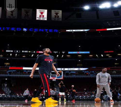 火箭隊首發(fā)陣容:謝潑德、湯普森、杜蘭特、史密斯、申京