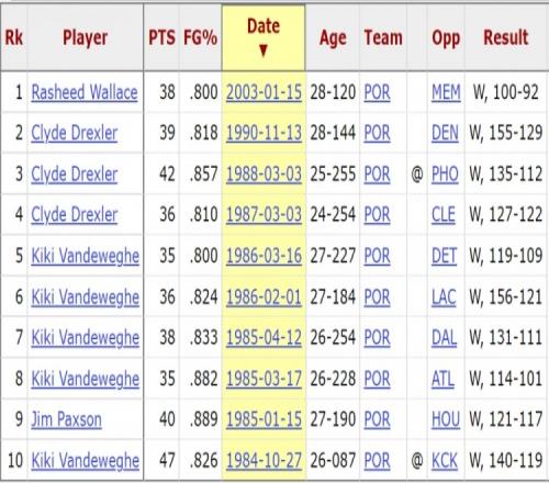 根據數據統計,卡馬拉是2003年的拉希德·華萊士之后、開拓者隊史上首位以至少80%命中率砍下至少35分的球員。