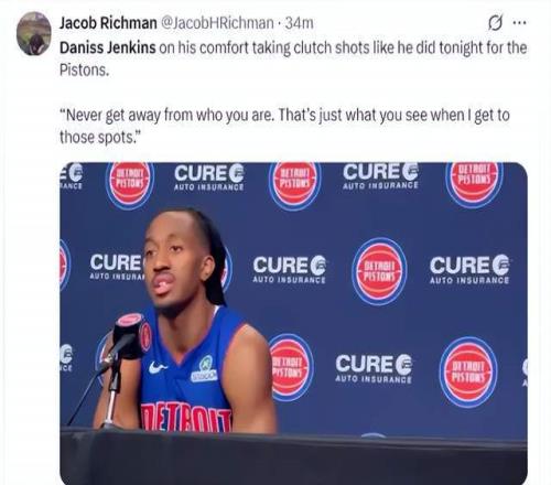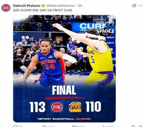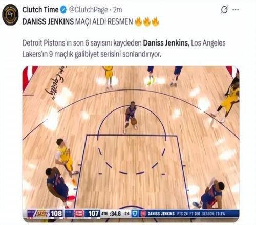 短短25秒時間里,詹金斯一人拿下關(guān)鍵6分,硬生生把比賽從湖人手中搶了回來。而反觀湖人一方,最后12秒東契奇急停中投失手,最后一攻的絕平三分更是直接三不沾。對比兩隊關(guān)鍵時刻的表現(xiàn),活塞取勝也就不難理解了。