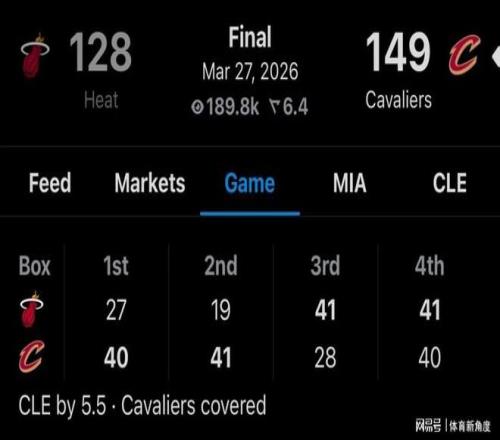 上半場(chǎng)戰(zhàn)罷,騎士便火力全開(kāi),狂攬81分。反觀熱火,直到第三節(jié)僅剩25秒時(shí),才好不容易將比分追至84分。如此比分態(tài)勢(shì),著實(shí)趣味橫生。最終,騎士以149 - 128的巨大優(yōu)勢(shì)大勝熱火。值得一提的是,在阿德巴約砍下83分后的8場(chǎng)比賽里,熱火僅取得2勝6負(fù)的戰(zhàn)績(jī)。若不是后續(xù)雄鹿表現(xiàn)實(shí)在拉胯,熱火在附加賽的席位恐怕都。