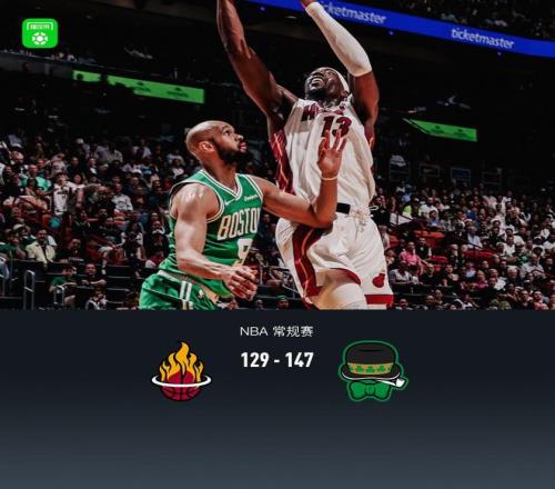 北京時間4月2日NBA 常規賽,邁阿密熱火對陣波士頓凱爾特人。半場熱火57-80凱爾特人,最終熱火129-147凱爾特人。