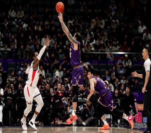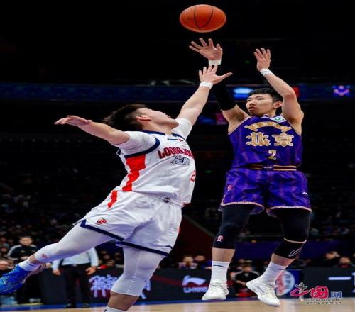 4月1日晚,2025-2026賽季CBA常規(guī)賽第33輪,北京控股男籃主場89比88逆轉(zhuǎn)廣州。圖為北京控股男籃廖三寧遠(yuǎn)投得分。中國網(wǎng)記者 鄭亮攝