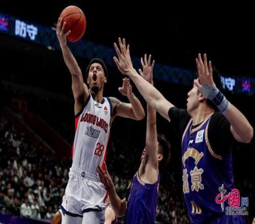 4月1日晚,2025-2026賽季CBA常規(guī)賽第33輪,北京控股男籃主場89比88逆轉(zhuǎn)廣州。圖為北京控股男籃佩里突破上籃。中國網(wǎng)記者 鄭亮攝