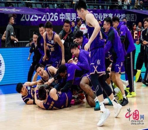 4月1日晚,2025-2026賽季CBA常規(guī)賽第33輪,北京控股男籃主場89比88逆轉(zhuǎn)廣州。圖為北京控股男籃隊(duì)員里勒絕殺對(duì)手后全隊(duì)?wèi)c祝勝利。中國網(wǎng)記者 鄭亮攝