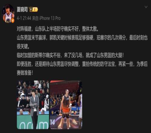 4月1日, 山東廣播電視臺體育頻道體育新聞主編徐凱華在個人社媒賬號上這么寫道。