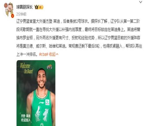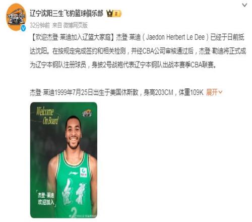 歡迎杰登·萊迪加入遼籃大家庭!期待他迅速融入球隊(duì),與隊(duì)友們并肩作戰(zhàn),為遼寧球迷奉獻(xiàn)更多精彩比賽,共同向著更高的目標(biāo)發(fā)起沖擊!