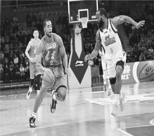 遼籃球員萊迪(左二)在比賽中發起進攻。 本報記者 孫海濤 攝