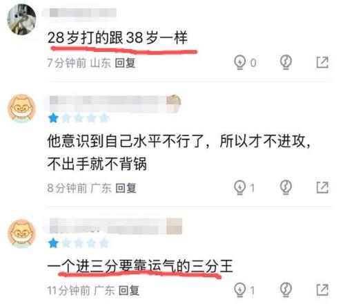 整場比賽,胡明軒替補出戰21分鐘,4投僅1中,拿到5分,直接被高詩巖完爆(高詩巖此役拿到15分3籃板6助攻)。28歲正值巔峰的胡明軒,本賽季猶如換了一個人似的,他的拉胯表現也引起了球迷的熱議:“是怎么做到一年內競技水準斷崖式下滑的”、“28歲打的跟38歲一樣”。
