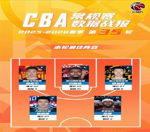 聯賽官方公布的第35輪最佳陣容,匯聚了一批近期狀態火熱、攻防俱佳的鋒線與核心球員。