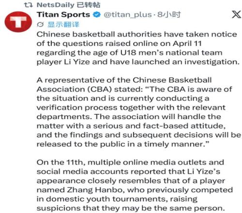 4月12日,關于U18球員李沂澤改年齡+改名事件鬧得沸沸揚揚,不僅籃球圈里的人在關注,現在徹底破圈,多家官媒都在關注,比如央視,甚至美國籃網媒體也在關注,只能說壞事傳千里!