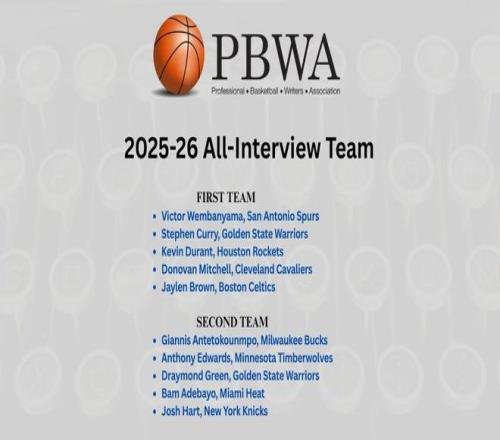 北京時間4月14日,美國職業籃球記者協會(PBWA)今日宣布,維克托-文班亞馬與斯蒂芬-庫里領銜入選2025-26賽季NBA“最佳媒體采訪陣容”,該獎項旨在表彰那些面對媒體始終態度誠懇、見解深刻且談吐風趣的球員。